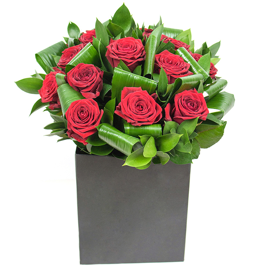Celebrate any occasion with our timeless red rose bouquet, featuring vibrant red roses, luxurious aspidistra leaves, and graceful ruscus. This unique arrangement exudes elegance and sophistication, making it a perfect gift for loved ones.
